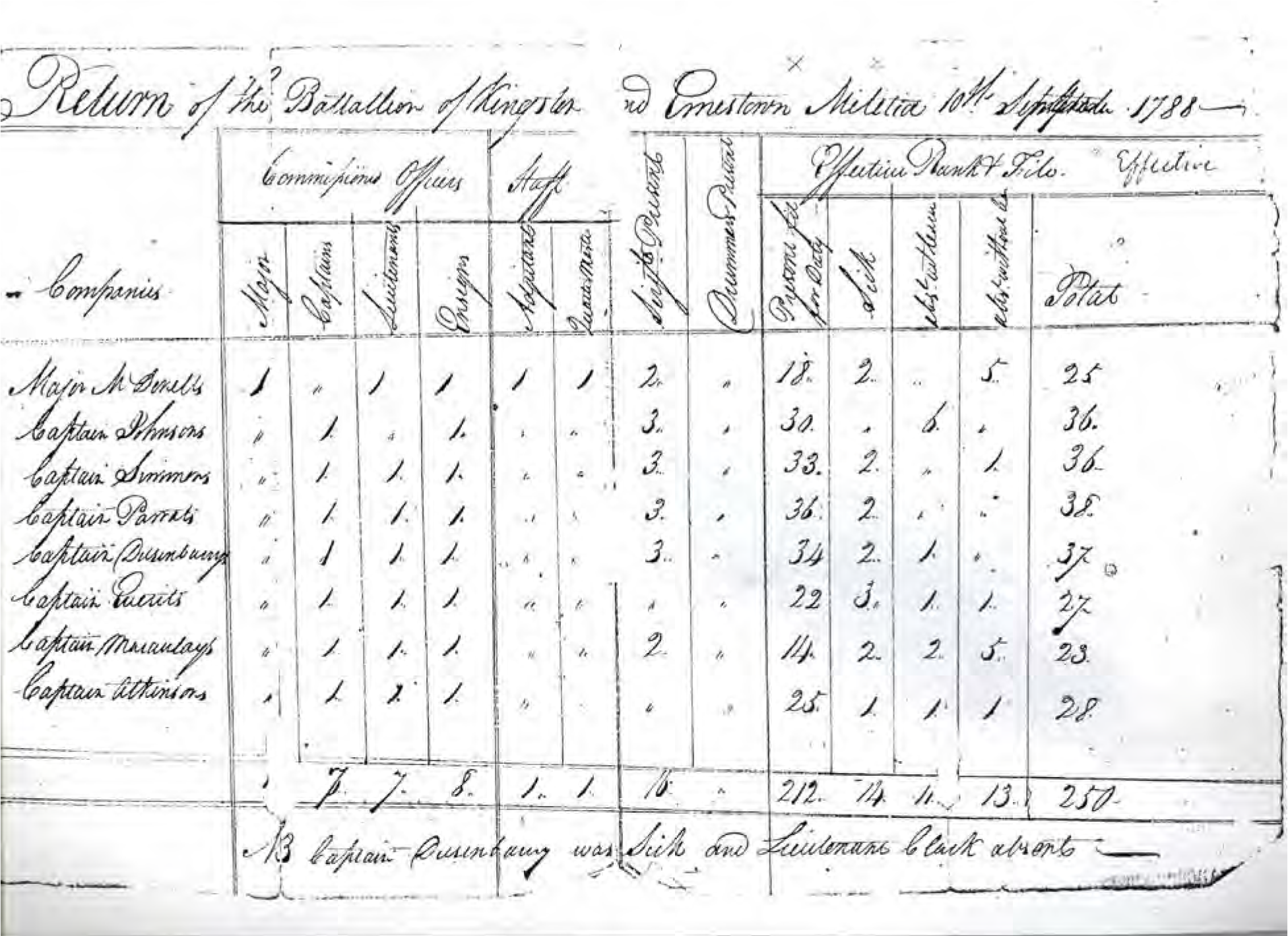 In case you have some difficulty reading the handwriting, the companies are: Major McDonell’s; Captain Johnson’s; Captain Simmons’; Captain Parrat’s; Captain Dusenberry’s; Captain Everit’s; Captain Macaulay’s; and Captain Atkinson’s.