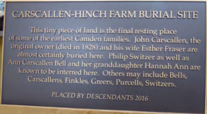 John Carscallen was granted 200 acres of land in Camden Township in 1805 in recognition of his loyal service. He died in 1828 but the land remained in the family until James Hinch purchased the property in 1885. In 1897, a grandson of John C. Carscallen living in New Jersey purchased the area of the cemetery and a right of way. For 119 years, the Hinch family descendants have overseen this cemetery. When Gerald Hinch heard last year of the 20-year-old wish to commemorate those buried here, he contacted a Bell descendant (our member Sharon Cadieux) and they started the process.