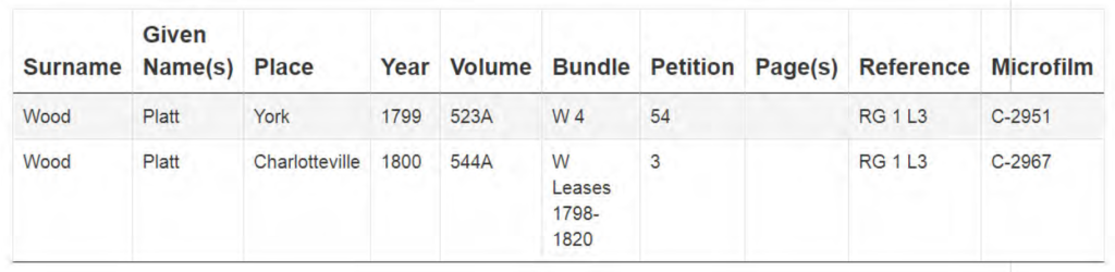 I decided to test this out. First I went to the LAC index at https://www.baclac.gc.ca/eng/discover/land/land-petitions-upper-canada-1763-1865/Pages/land-petitions-uppercanada.aspx. I searched for Platt Wood, my 4-gts-grandfather, who I have not really explored.
