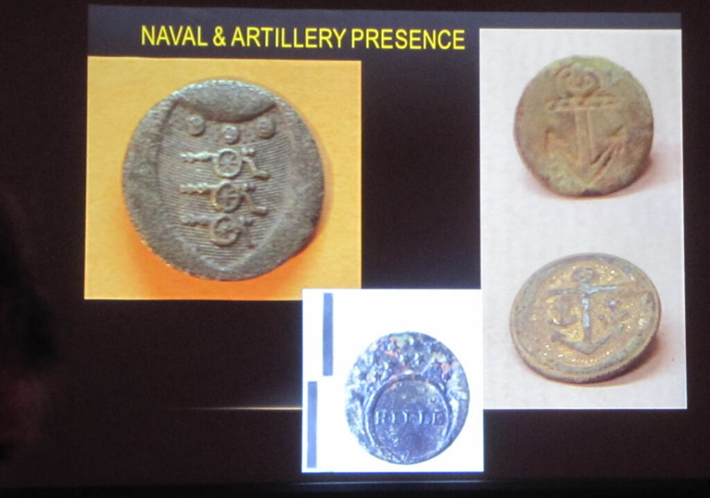 In 2004 a new dormitory was to be built at RMC. This afforded an opportunity for archaeological investigations. They did find evidence of 1812 Encampments, with ash deposits from campfires, ceramics, large pieces of animal bones, glassware, musket balls and military buttons, and coins.