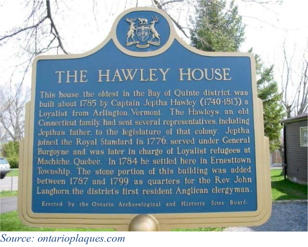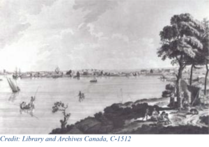 Richard reported that very little information exists about the movement of the Loyalists westward up the St. Lawrence River from Quebec. He did manage to find documentation that Jephtha Hawley was put in charge of the settlers waiting at Machiche, Quebec. (Jephtha Hawley’s home is the oldest existing building in the village of Bath – the former village of Ernestown – and is a designated historical site.) Hawley drew up destination lists: some Loyalists were to travel east to Chaleur Bay in what would become New Brunswick, others to Cataraqui, Adolphustown or Ernesttown in what would become Upper Canada.
